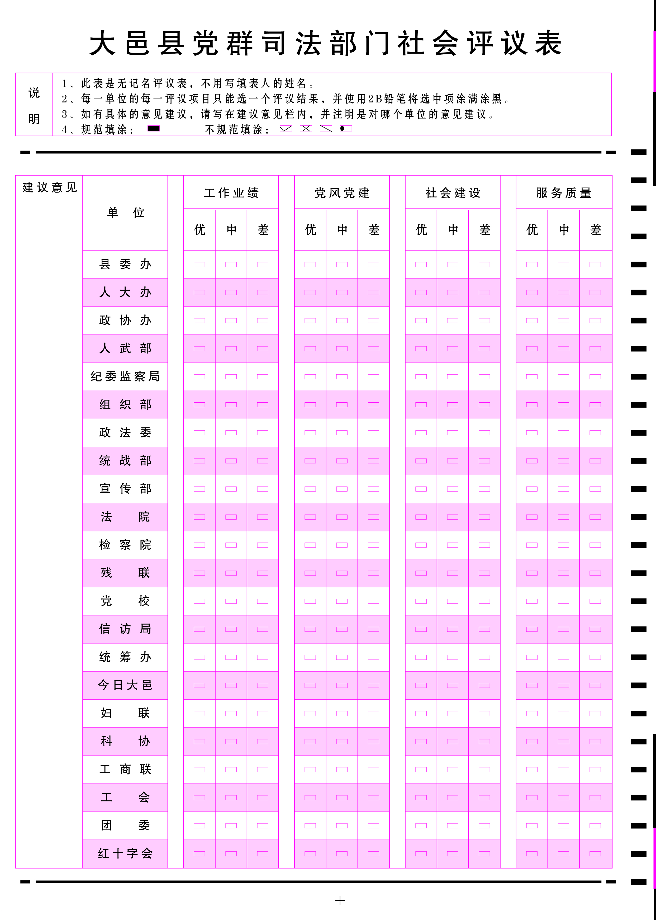 大邑黨群司法部門社會評議表