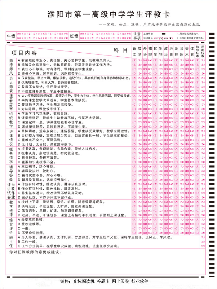 民主評教卡 學(xué)生評教卡 問卷評教卡
