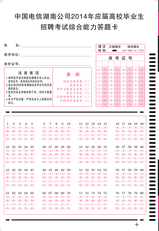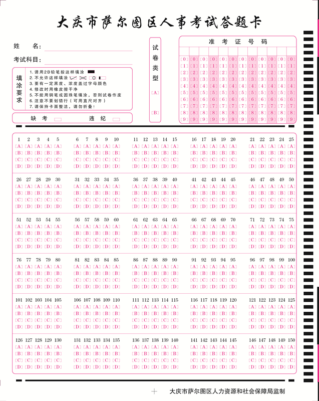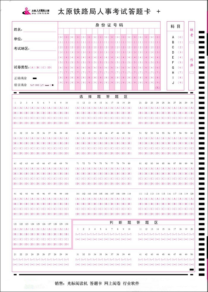 單招考試答題卡 干部培訓結業考試 人事考試01
