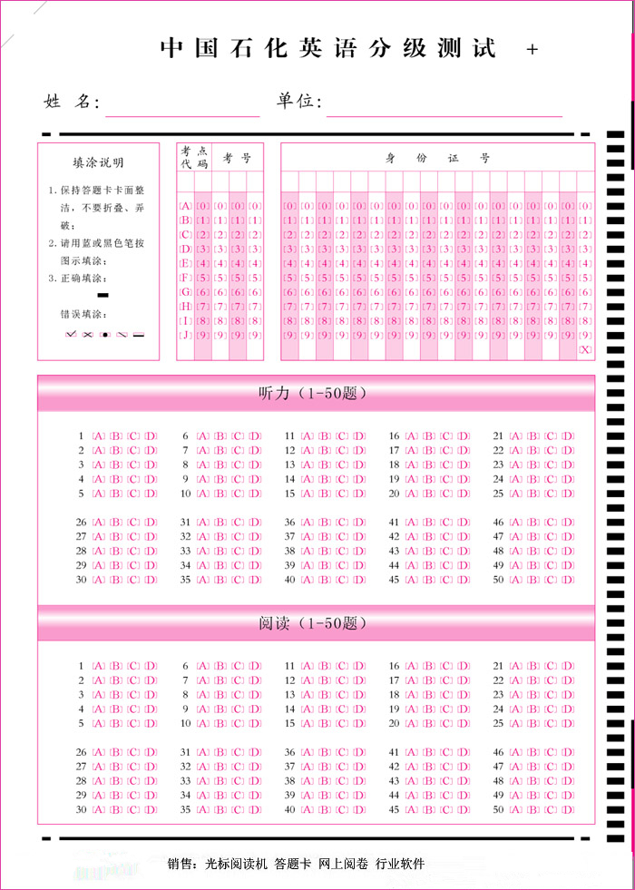 標準化答題卡 企業人員考核 醫院招聘考試答題卡