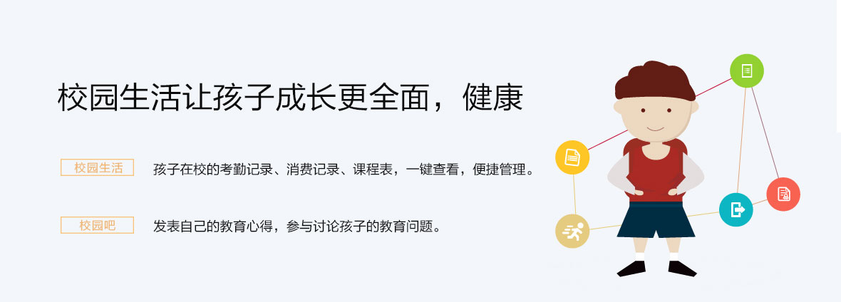 家長可在(小優(yōu)智校)手機(jī)端實(shí)時收到推送的孩子進(jìn)出校門的情況 / 上課表現(xiàn)情況 / 考試成績分析 / 學(xué)校內(nèi)實(shí)時監(jiān)控畫面 / 課后作業(yè)通知 /學(xué)生在校消費(fèi)情況 / 在線為孩子及時充值 / 孩子宿舍考勤情況 / 宿舍管理情況 /學(xué)生請假等,充分提供給家長一個更加全面的學(xué)生在校報告。為家校共同教育提供堅(jiān)實(shí)基礎(chǔ)