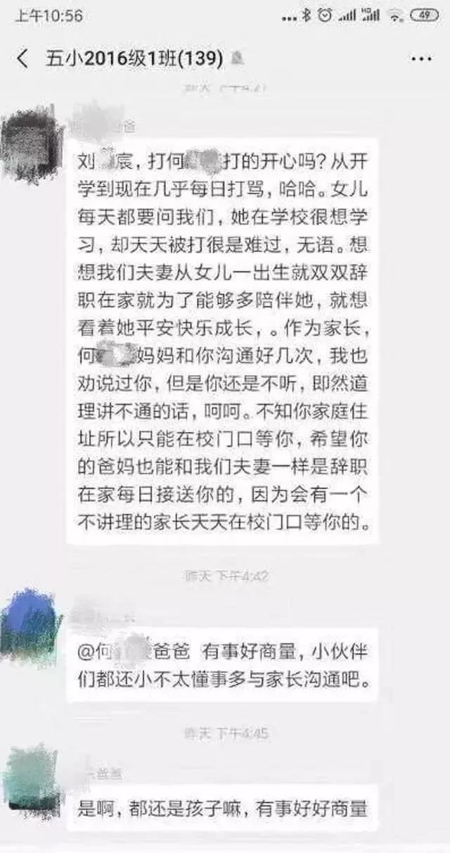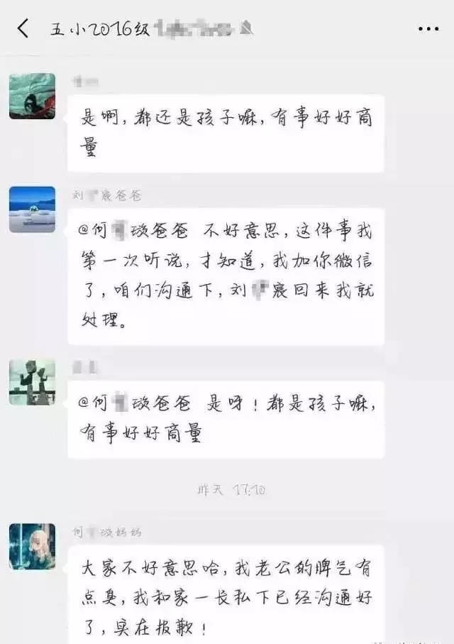 可被害者家長卻表示**次聽說此事,并表示要加微信溝通解決。